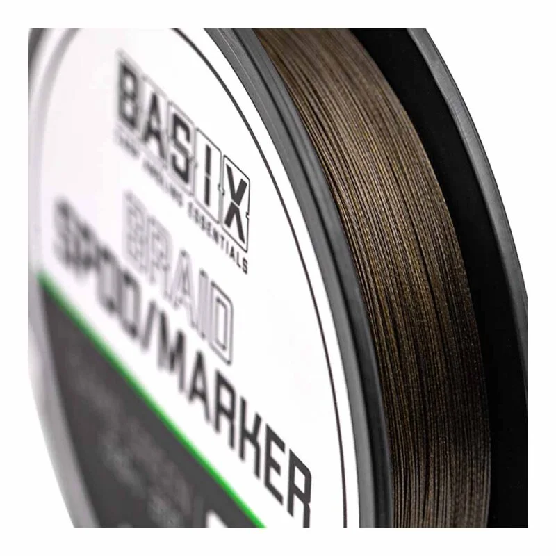 Basix Spod/Marker Braid besteht aus einem dicht gewebten Geflecht und fühlt sich seidig glatt an, was auch die Wurfweite unterstützt. Es hat eine unauffällige Camo-Grün-Farbe und wird auf 200m-Spulen geliefert, was bedeutet, dass es am besten mit etwas untergefütterter Schnur verwendet wird. Die Größe dieser Spule stellt sicher, dass Sie Ihre Rolle nicht mit hunderten von Metern teurer Schnur füllen müssen.
